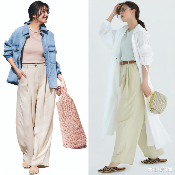 无论是搭配简单的T恤,还是搭配优雅的衬衫,这些米色阔腿裤都能助你轻松驾驭。当你穿上它们,便能发现自己的气质在不经意间提升,成为初夏街头的一道亮丽风景。